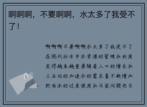 啊啊啊,不要啊啊,水太多了我受不了!